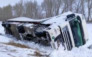 В Акмолинской области фура с семенами опрокинулась в кювет