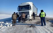 Грузовик сдуло ветром с дороги в Восточном Казахстане