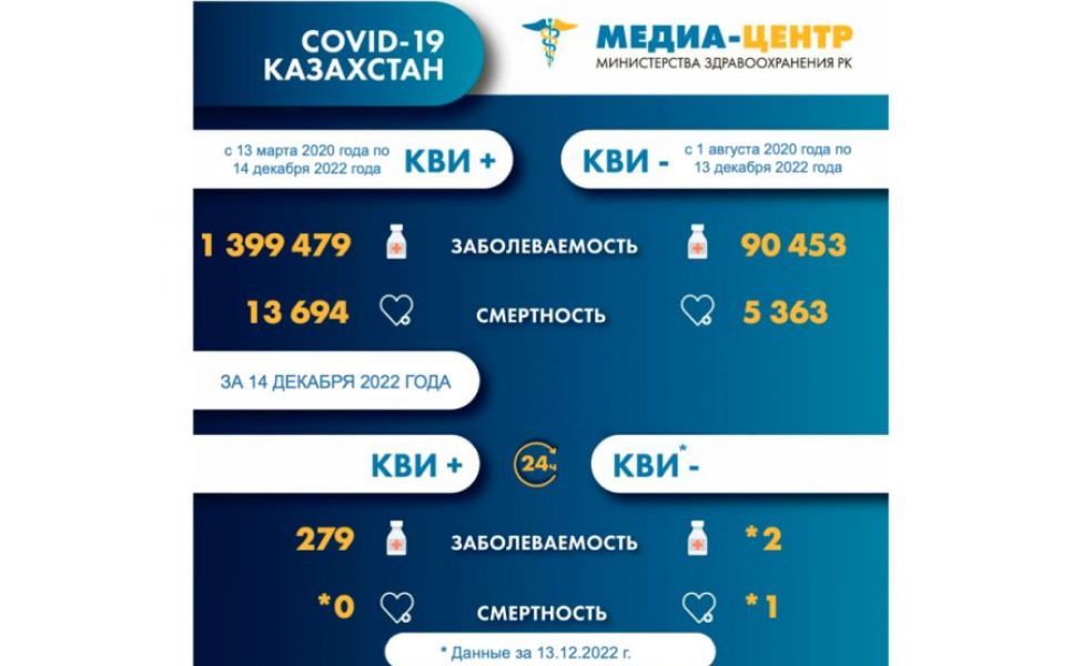 Информацию о заболеваемости коронавирусной инфекцией в РК на 15.12.2022 г. сообщает пресс-служба минздрава РК.