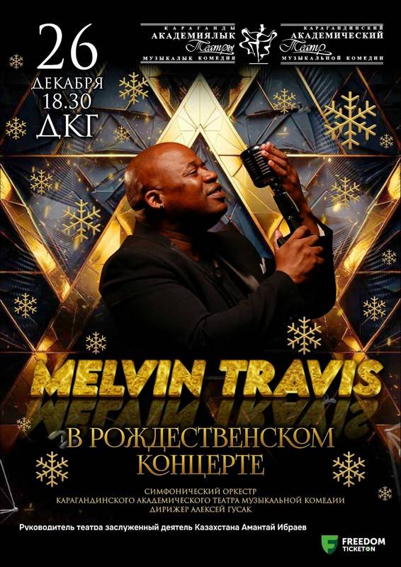 26 декабря в 18:30 в ДКГ выступит звезда мировой сцены баритон из Франции Трэвис Мелвин. Он исполнит для карагандинцев композиции в стиле джаз, блюз, госпел и т. д. Мистер Мелвин выступит в сопровождении симфонического оркестра Карагандинского академического театра музыкальной комедии. Он также сочиняет музыку, пишет книги, преподаёт вокальное искусство.