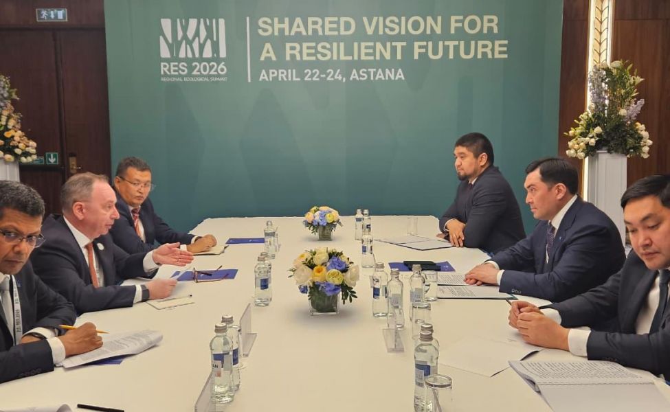 Министр энергетики Республики Казахстан Ерлан Аккенженов провёл двустороннюю встречу с Генеральным директором Азиатского банка развития Евгением Жуковым в рамках Регионального экологического саммита в Астане.