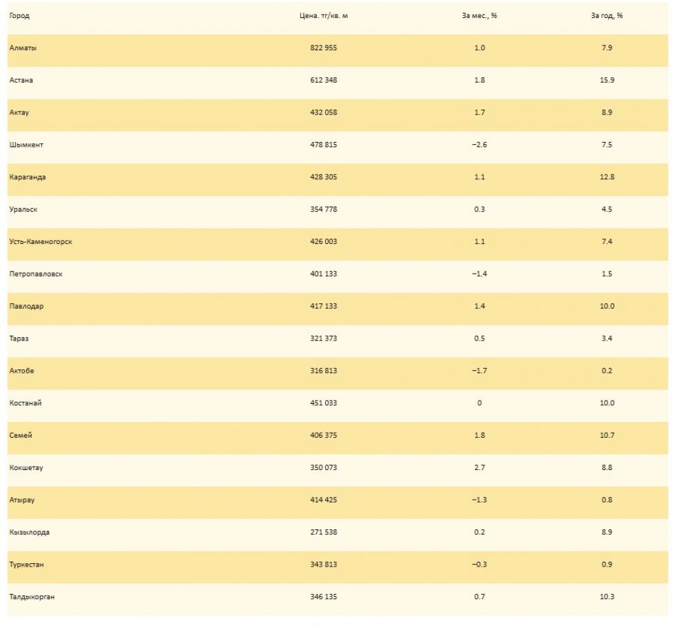 - Алматы — 822 955 тг/кв. м;
