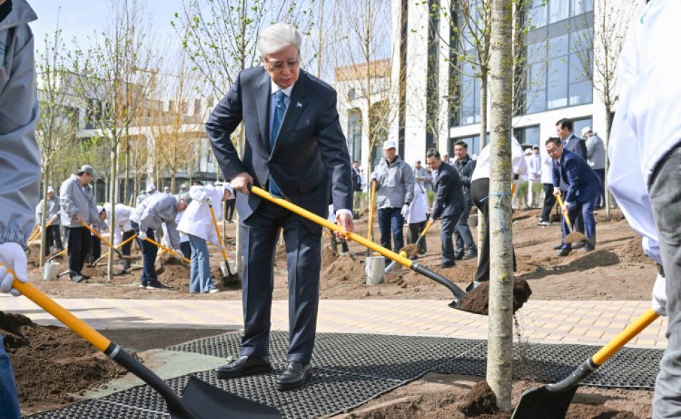 В рамках в республиканской экологической акции «Таза Қазақстан» Президент Касым-Жомарт Токаев совместно с экоактивистами посадил дерево на территории столичного парка «Самал».