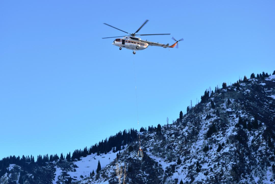 С целью предупреждения самопроизвольного схода снежных масс выполнен профилактический спуск лавин с применением современной газодинамической установки DaisyBell. Установка представляет собой подвесную систему, закрепляемую под вертолётом. Принцип её работы основан на контролируемом подрыве газовой смеси (кислород и водород) на безопасной высоте над снежным покровом. Образующаяся ударная волна инициирует сход нестабильных снежных масс, что позволяет предотвратить их неконтролируемое движение.
