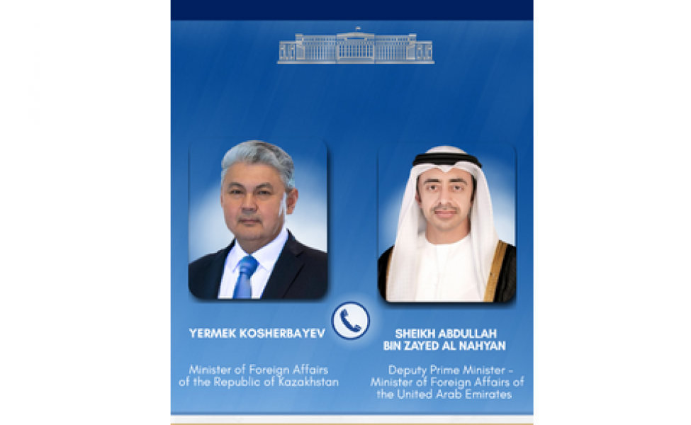 Министр иностранных дел Республики Казахстан Ермек Кошербаев провел телефонный разговор с Заместителем Премьер-министра – Министром иностранных дел Объединенных Арабских Эмиратов шейхом Абдаллой бен Заидом Аль Нахаяном.