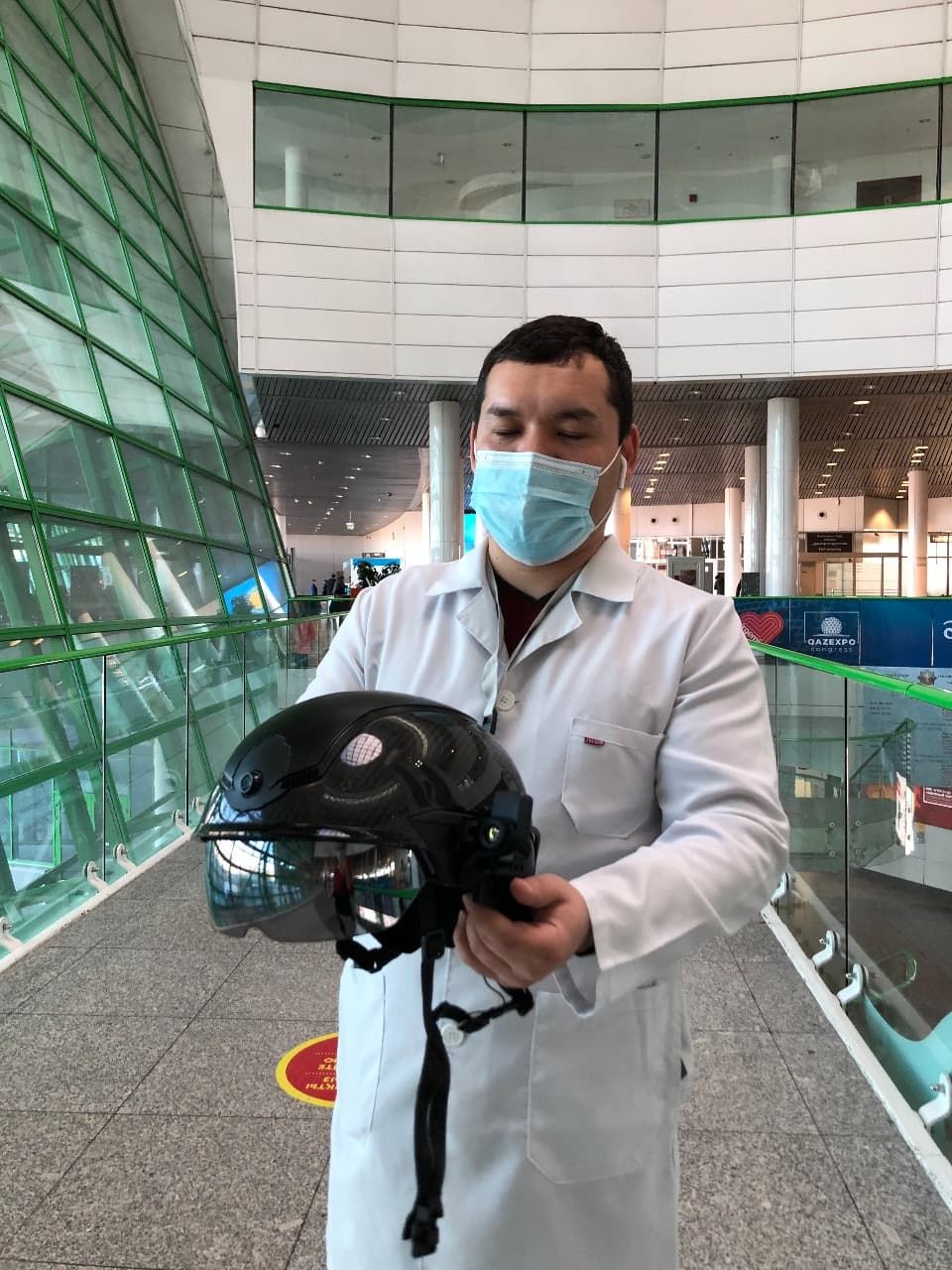 "Главная его функция, это термометрия, то есть измерения температуры. Но у смарт-шлема есть и другие функции, например, распознавать сотрудников по служебным удостоверениям, служебные автомобили. Нужно только настроить его функции", - говорит и.о заведующего здравпунктом АО "Международный аэропорт Нурсултан Назарбаев", врач-терапевт Абдигани ШАПУЛАТОВ.
