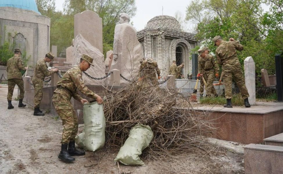 На некрополе «Кенсай» курсанты Военно-инженерного института радиоэлектроники и связи провели военно-патриотическую акцию по благоустройству захоронений выдающихся деятелей Казахстана.