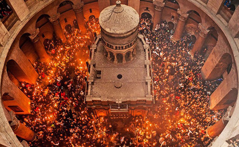 11 апреля 2026 года. Святая Земля. В Преблагословенную субботу в храме Гроба Господня в Иерусалиме произошло схождение Благодатного огня.