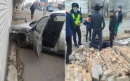 В Павлодаре в результате ДТП машина врезалась в кирпичный забор, который завалил пешехода