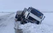 В СКО на обледенелых трассах не удерживаются даже большегрузы