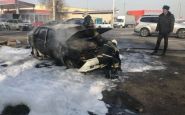 В Алматы напротив рынка «Семиречье» сгорела машина