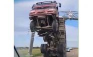 Водитель грузовика повредил дорожную опору в Костанайской области