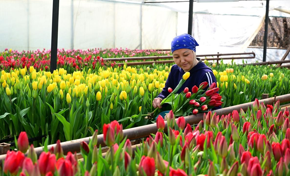 В теплице жительницы села Мукры Коксуского района Балжан Нусип уже давно царит весна, воздух пропитан ароматом свежести, а глаза радует яркая палитра красок. Желтые, красные, белые, малиновые, нежно-розовые, пестрые... После зимнего монохрома любование тюльпанами становится настоящим визуальным праздником, но его создание требует труда и терпения.
