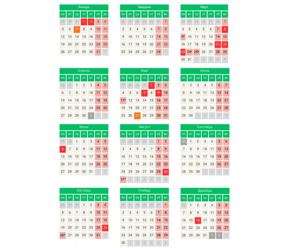 Первый день Курбан-айта, отмечаемого по мусульманскому календарю, 7 января - православное Рождество являются выходными днями (без переносов).