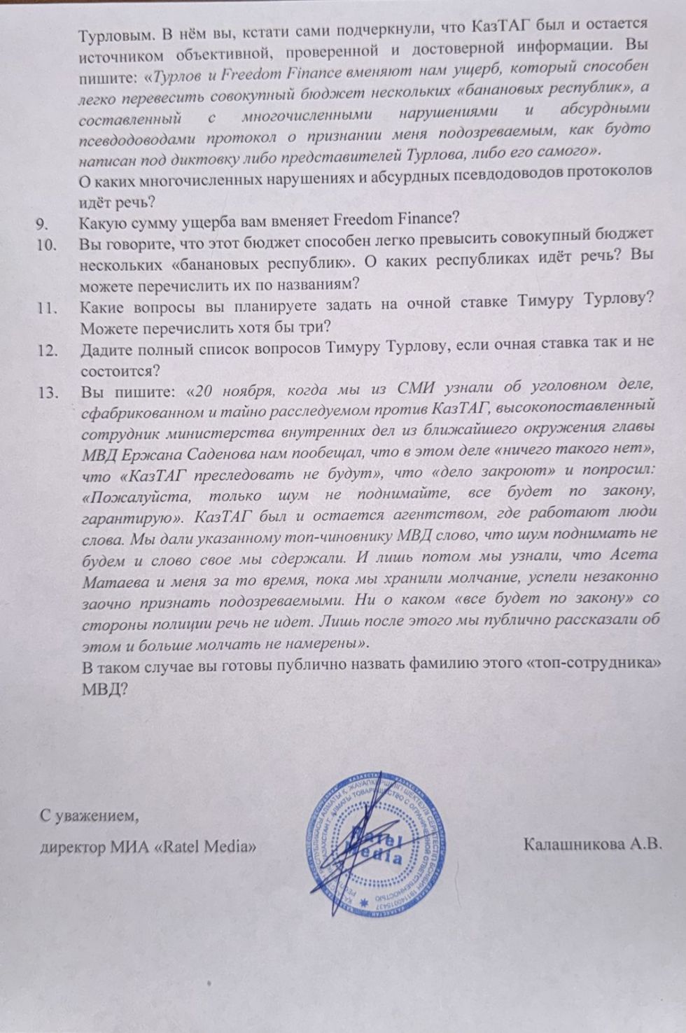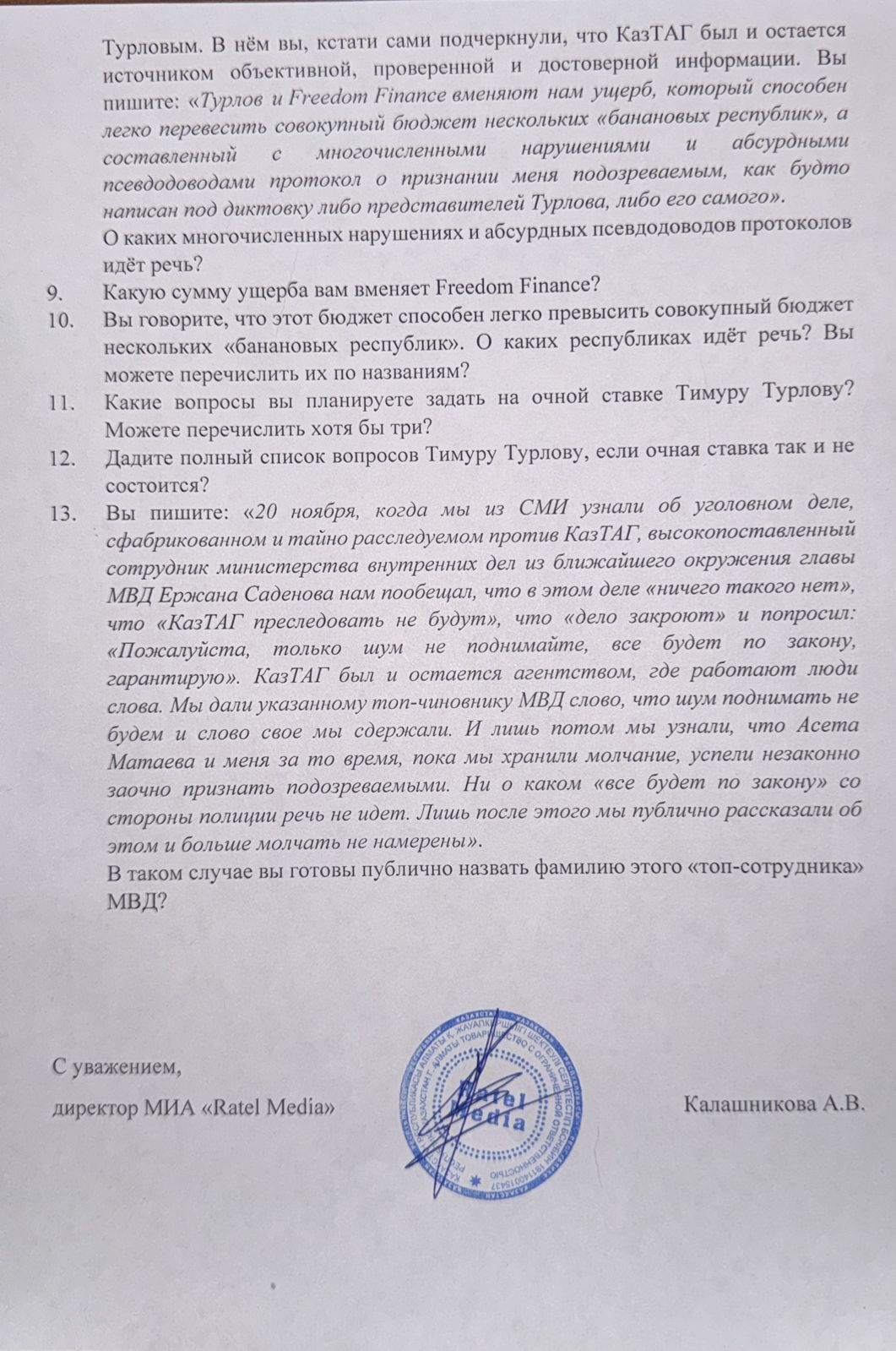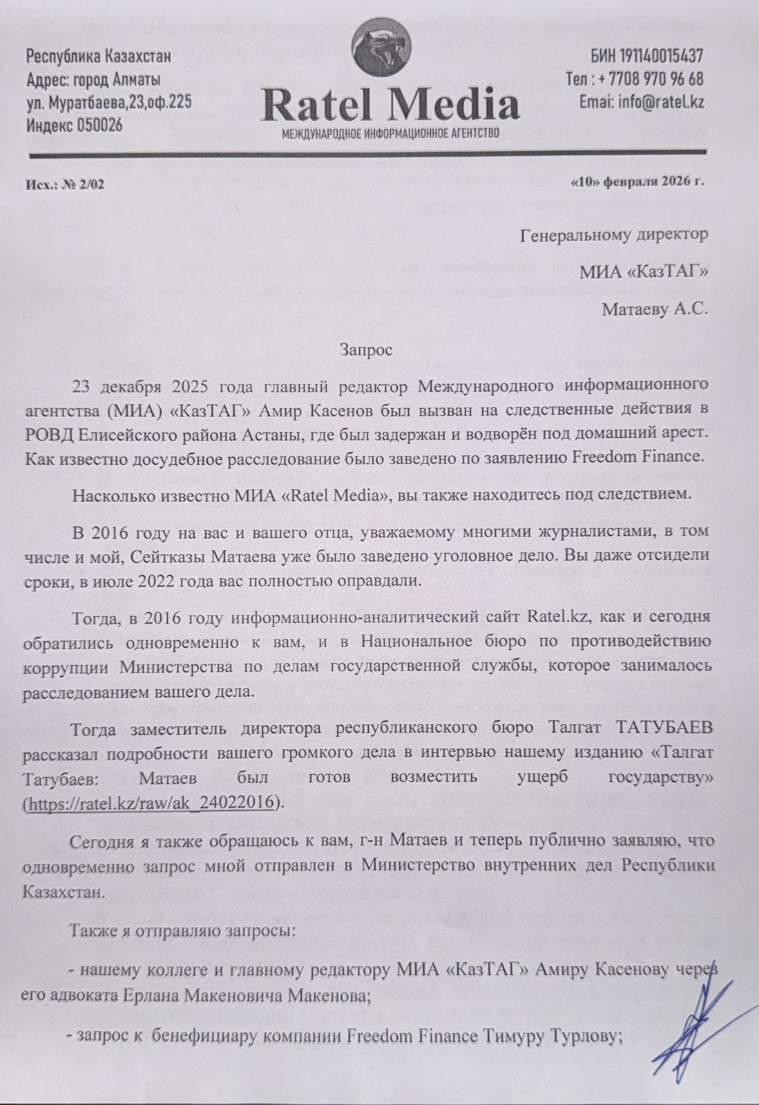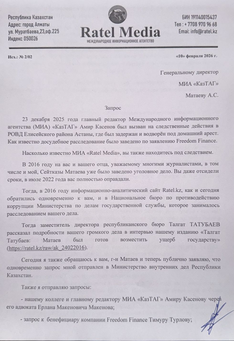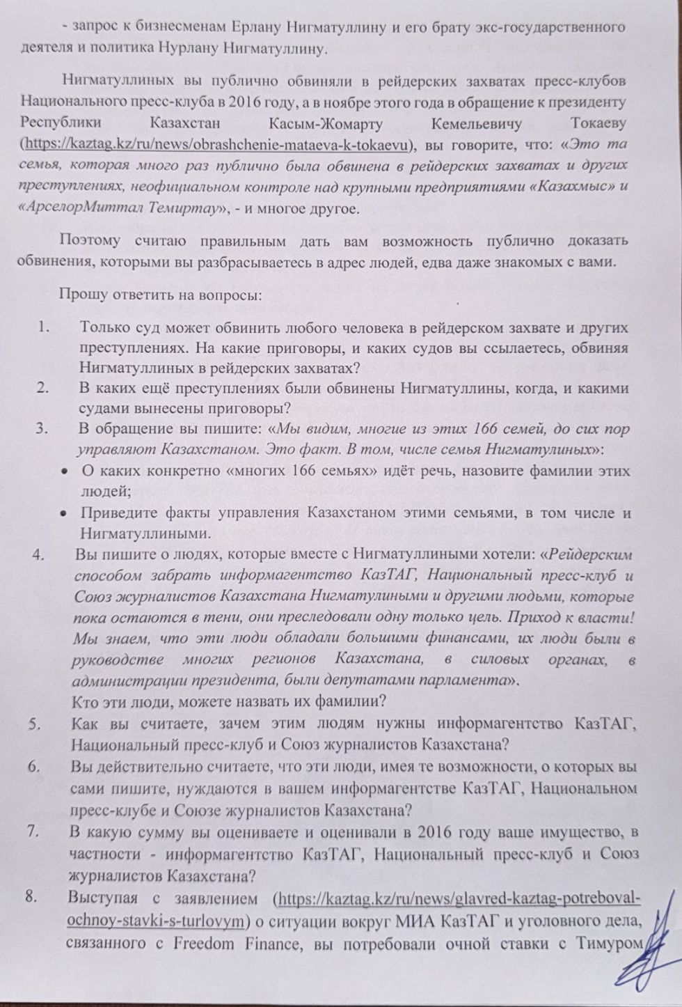 Запрос в КазТАг