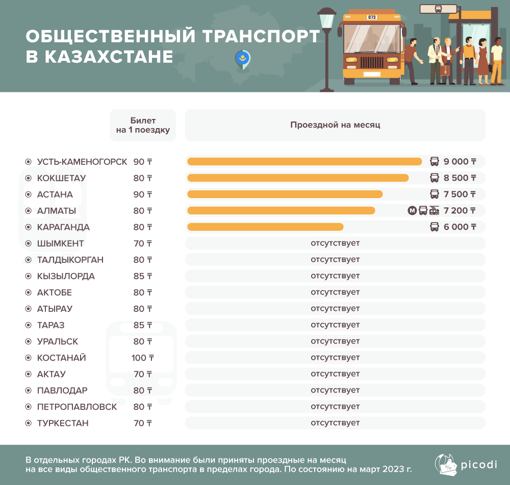 Также Picodi.com изучила стоимость проезда в административных центрах Казахстана.