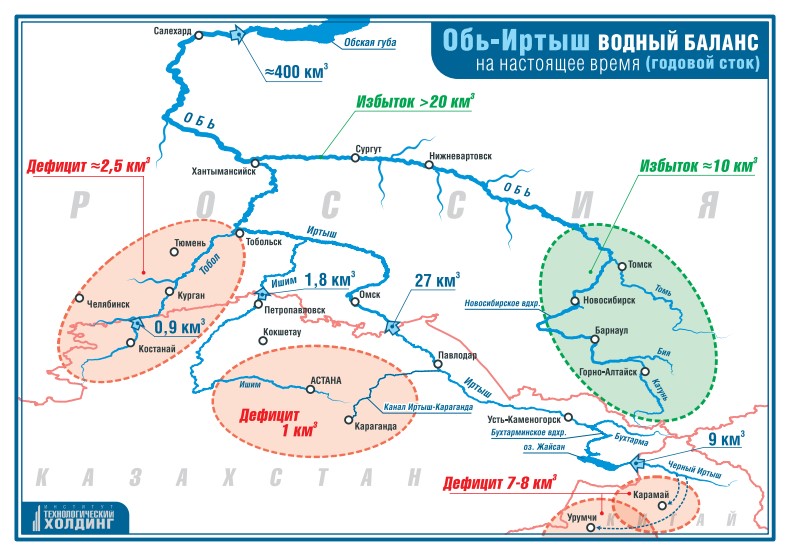 Тут надо понимать, что при огромном объеме годового сброса по Оби и зарегулированности Иртыша, областные центры – Омск и Тюмень, и города Казахстана, которые находятся вдоль нижнего и среднего течения Иртыша, летом страдают от дефицита воды.