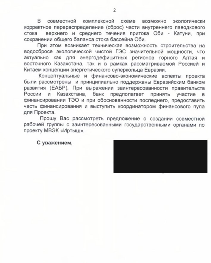 Ну и попутно это нам позволит генерировать дополнительные объемы энергии на существующих уже станциях и на новой станции на сбросе воды Алтая в Бухтарму. Кстати, это супер привлекательный проект на 2 гигаватта зеленой энергии, сбрасывать во благо России и Казахстана.