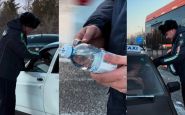 Сотрудники полиции раздали воду и финики водителям, держащим пост в Павлодарской области