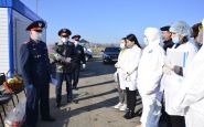 Начальник Департамента полиции Жамбылской поздравил с Наурызом дежуривших на Кордайском блок-посту сотрудников