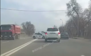 На трассе Алматы - Кокпек грузовик сбил полицейскую патрульную машину