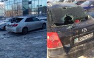 В Алматы с 33 этажа жилого комплекса упали сосульки и разбили три машины