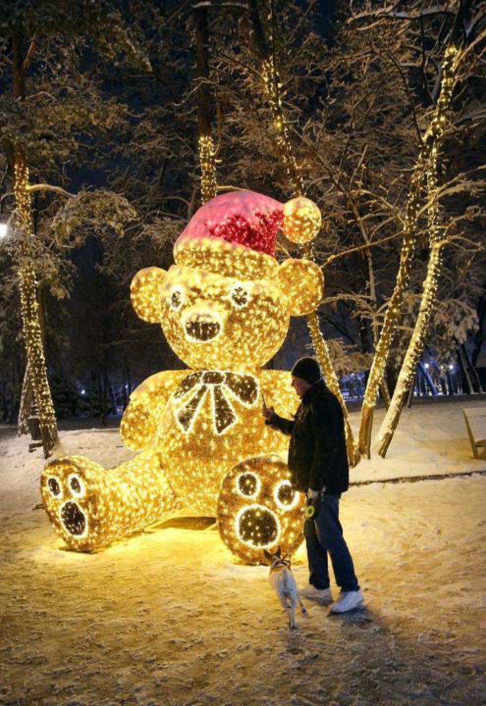 Следует отметить, что часть ранее приобретённых новогодних украшений была восстановлена и повторно использована. В текущем году обновлены 56 малых архитектурных форм, включая 4 новогодние ели, 45 праздничных домиков и 7 крупных световых конструкций.