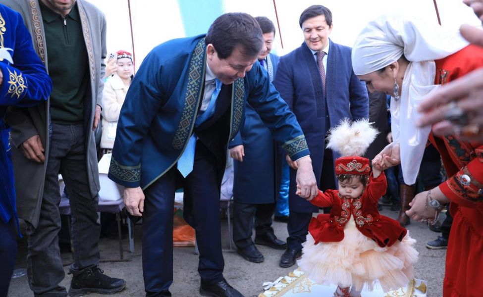 Глава региона посетил праздничные площадки, заглянул в юрты, где были представлены национальные традиции, ремесла и угощения. В юрте, установленной депутатами городского маслихата Актобе, он вместе с акимом города Азаматом Бекетом стал свидетелем обряда «Тұсаукесер». Близнецам по имени Айдын и Айқын недавно исполнился один год. После того как малыши сделали свои первые шаги по белой дорожке, оба руководителя пожелали им светлого и счастливого жизненного пути.