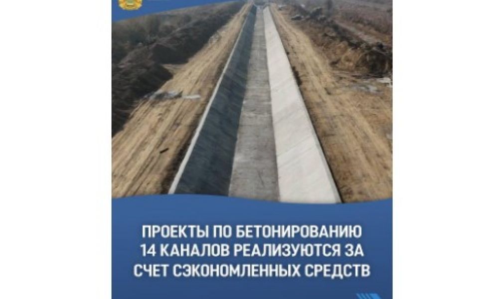 За счет экономии средств в рамках совместного с Европейским банком реконструкции и развития проекта по реконструкции ирригационных сетей Министерством водных ресурсов и ирригации начаты проекты по бетонированию 14 каналов.
