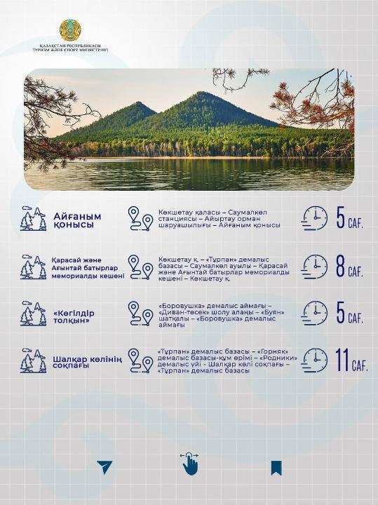 Экомаршруты ориентированы на активный отдых, познавательные путешествия и бережное знакомство с природным наследием региона. Они позволяют увидеть природные ландшафты, посетить исторические места и открыть для себя туристский потенциал Северо-Казахстанской области.
