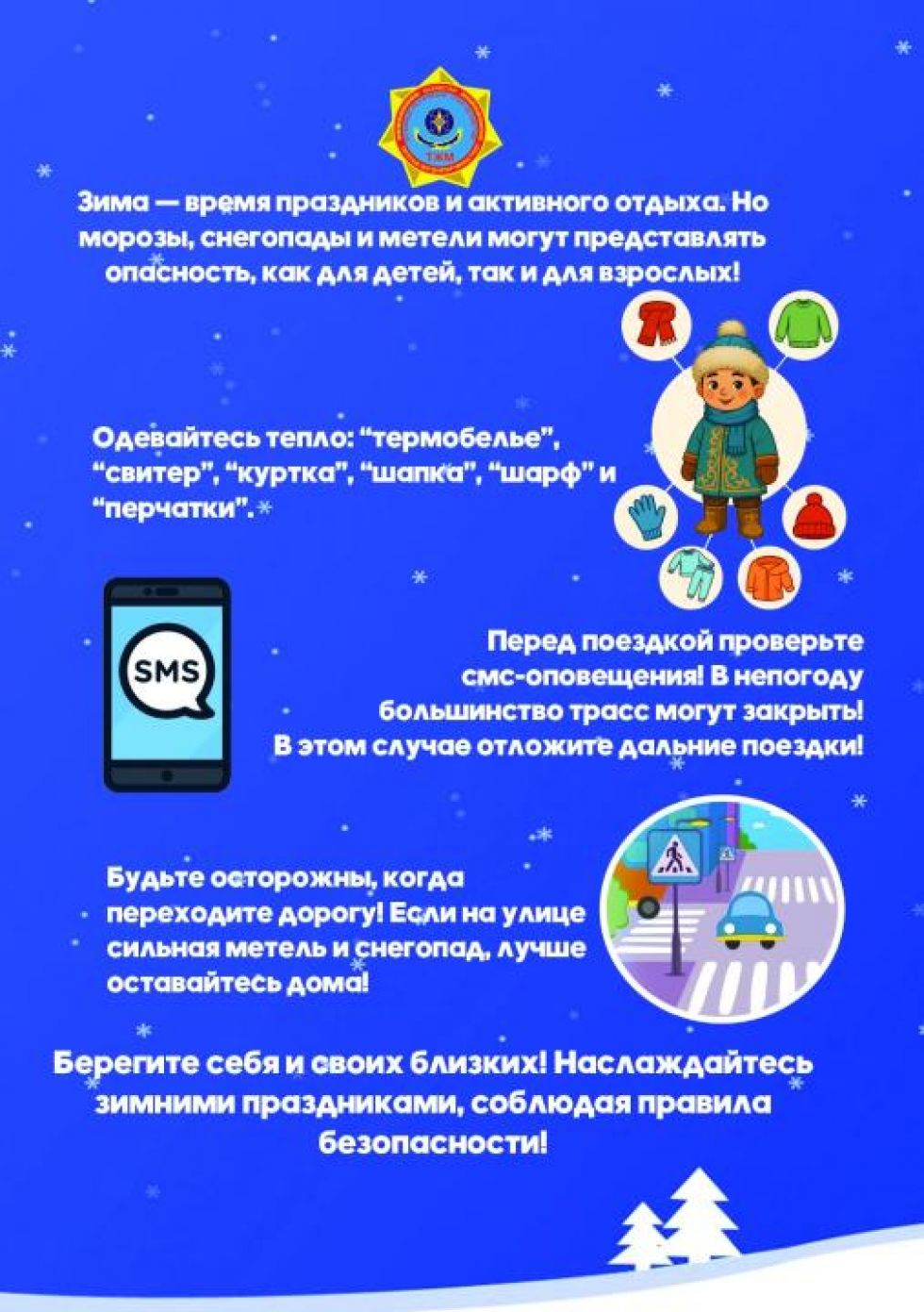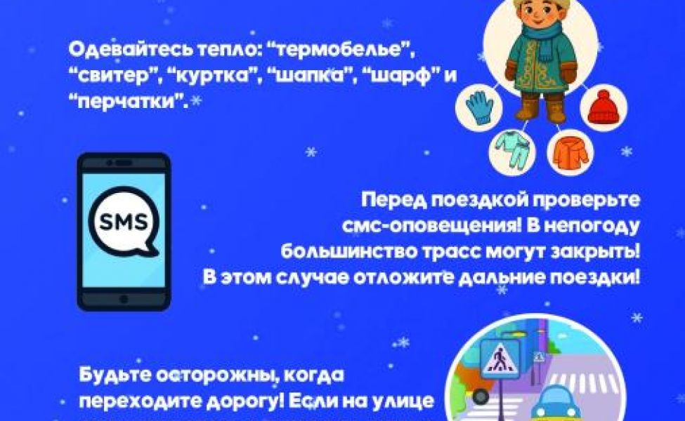 МЧС Казахстана призывает граждан соблюдать меры предосторожности, следить за штормовыми предупреждениями и не выезжать в дальние поездки при неблагоприятных погодных условиях. Жителям сельской местности рекомендуется воздерживаться от длительных пеших прогулок в условиях ухудшения погоды.