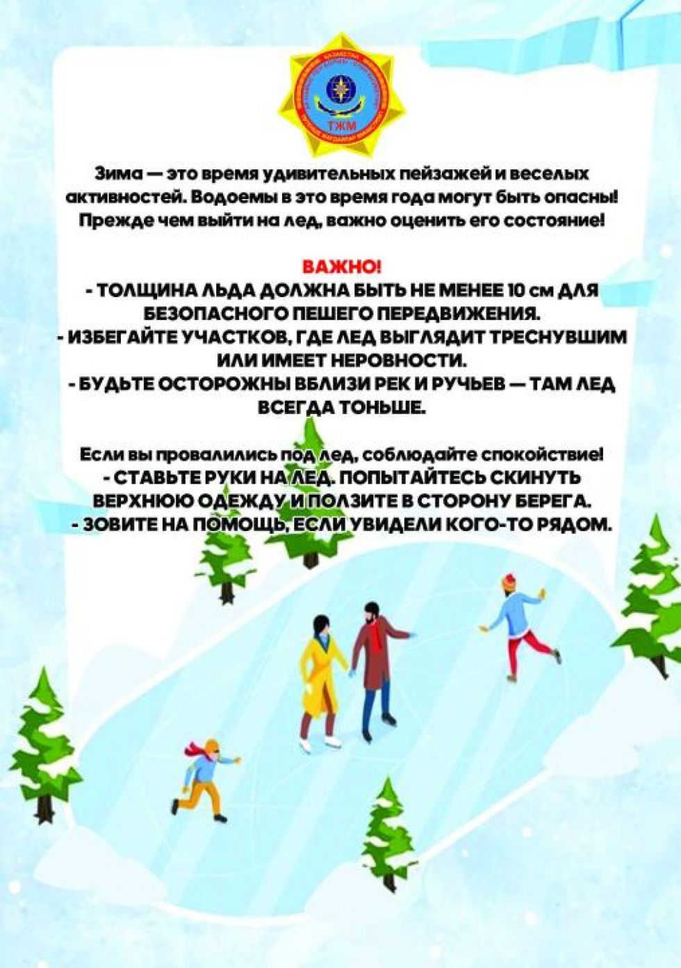 МЧС обращает внимание населения на повышенную опасность выхода на неокрепший лёд в зимний период и настоятельно рекомендует строго соблюдать меры безопасности при нахождении на водоёмах.