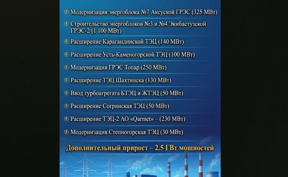 • строительство энергоблоков №3 и №4 Экибастузской ГРЭС-2 (1 100 МВт);
