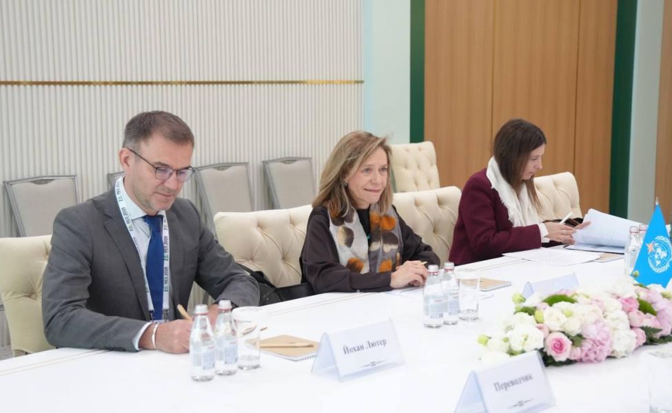В рамках Регионального экологического саммита проходит встреча Министра экологии и природных ресурсов Е. Нысанбаева с Генеральным секретарем Всемирной метеорологической организации (ВМО) госпожой Селестой Сауло.