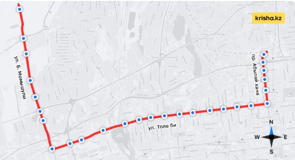 Она соединит ТПУ «Барлык» с улицей Б. Момышулы, железнодорожный вокзал Алматы-2 с ТПУ «Восточные ворота».
