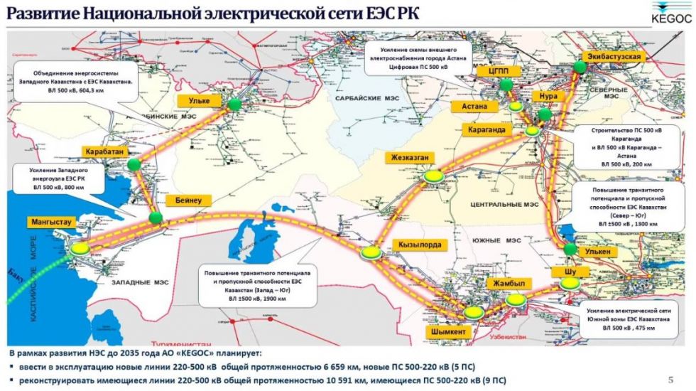 В перспективе также планируется строительство подстанции 500 кВ в Караганде и линии 500 кВ «Караганда – Астана», реализация проекта «Караганда – Жезказган – Кызылорда – Шымкент», усиление Западного энергоузла, а также строительство линии постоянного тока «Запад–Юг».