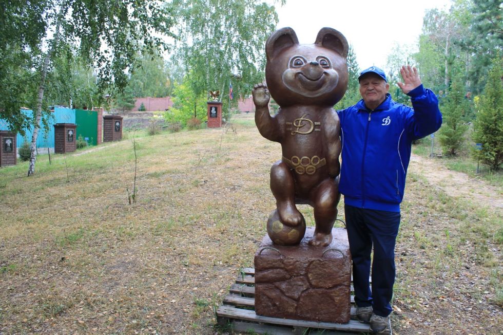 В центре сквера – Олимпийский Мишка в динамовской майке.