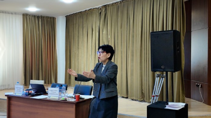 Доктор политических наук Улбосын Жанатаева объясняет участникам инструменты переговоров. Не как набор техник, а как способ изменить сам подход: от давления — к диалогу.