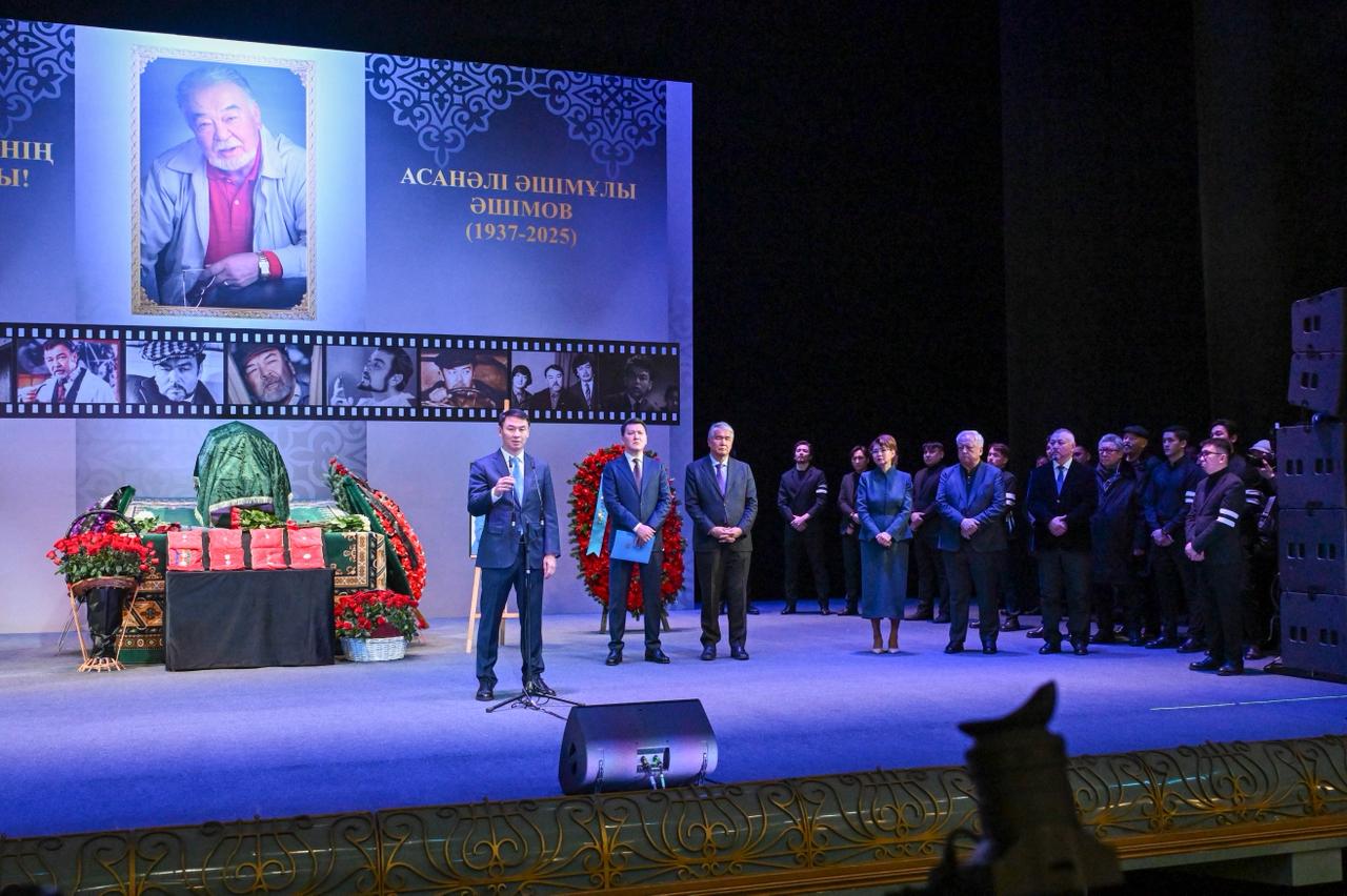 «Асанали Ашимов посвятил всю свою жизнь театру и кино, внеся неоценимый вклад в расширение горизонтов нашей национальной культуры. Он мастерски воплотил на сцене и на экране множество ярких образов, снискав искреннюю любовь и признание зрителей. Как выдающийся мастер сцены и профессиональный кинематографист, он оставил после себя неизгладимый след. Направляя и поддерживая молодых деятелей искусства, он внес значительный вклад в сохранение духовной преемственности. Светлый образ Асанали Ашимова, прожившего достойную и созидательную жизнь, с честью неся высокое искусство, навсегда сохранится в сердцах нашего народа», — сказал Ерлан Карин.